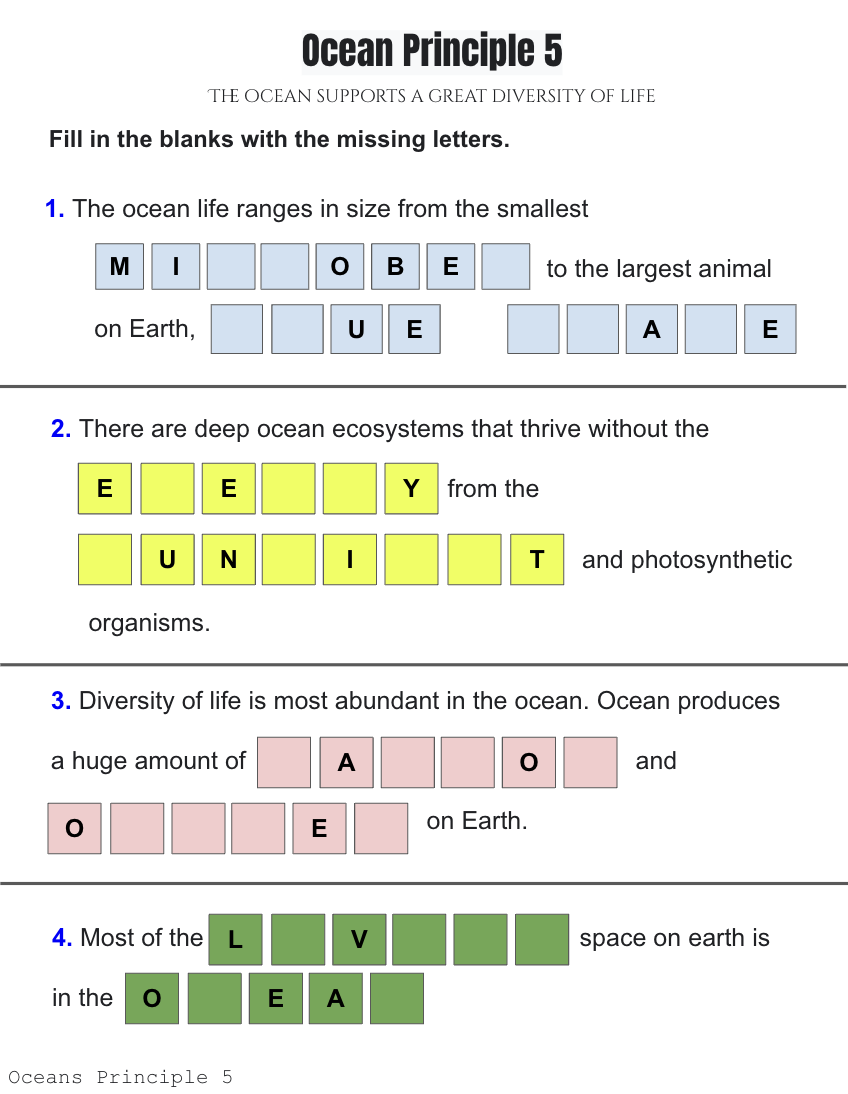 From tourism to food, in the Bay Islands of Honduras, the economy thrives on the ocean. In this environment, it is critical that students understand their local environment. We worked with a local non-profit to develop ocean literacy worksheets. Currently, the worksheets will be rolled out to the Preschool and Kindergarten grade levels, ages 5-7. For more accessibility, the worksheets have been created in Spanish and English for the different schools.