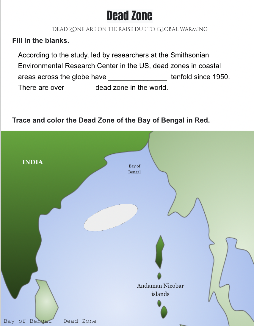 These worksheets aim to educate and inspire the students of government schools in Telangana, India to inspire students to produce innovative solutions to reduce ocean pollution. We hope that the increase in education will show throughout their adulthood and help preserve this environment.