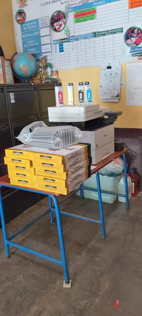 We donated a Xerox copy machine to a primary government school in Antigua, Guatemala. Due to the COVID-19 global pandemic, this school went into online, distance learning. However, many of the students were unable to join class due to a lack of access to technology. This copy machine allowed teachers to print and distribute materials to students; they helped improve learning during the global pandemic.